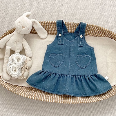 앙뜨제이.데님하트멜빵치마