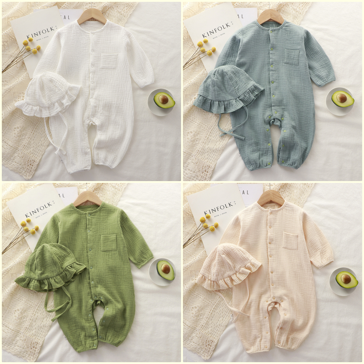 [수입]거즈슈트셋(모자포함)
